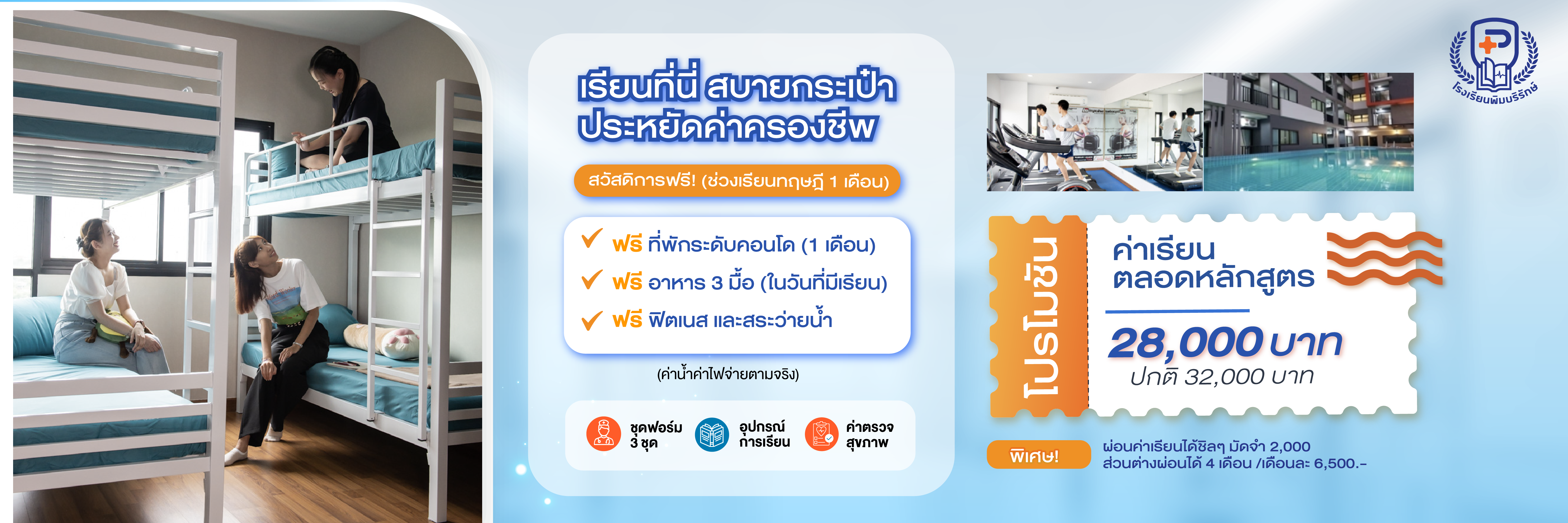 ห้องพักฟรีระดับคอนโด ตลอดการเรียนภาคทฤษฎี